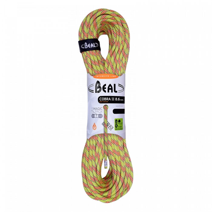 The Beal Cobra II Unicore Dry Cover 8.6mm is a technical and strong, classic climbing rope to support the most difficult demands of traditional climbing.