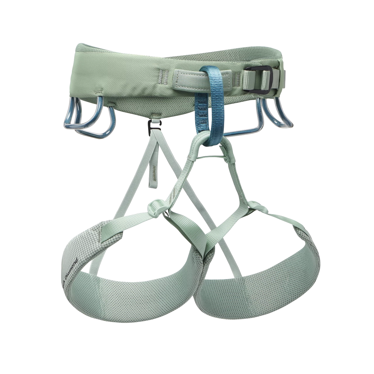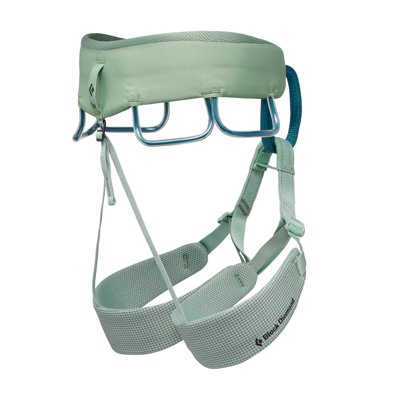 The Black Diamond Women’s Momentum Harness is a very popular all-around climbing harness specifically designed for the female physique, featuring four gear loops, trakFIT-adjustable leg loops and an ultra-comfortable waistbelt.