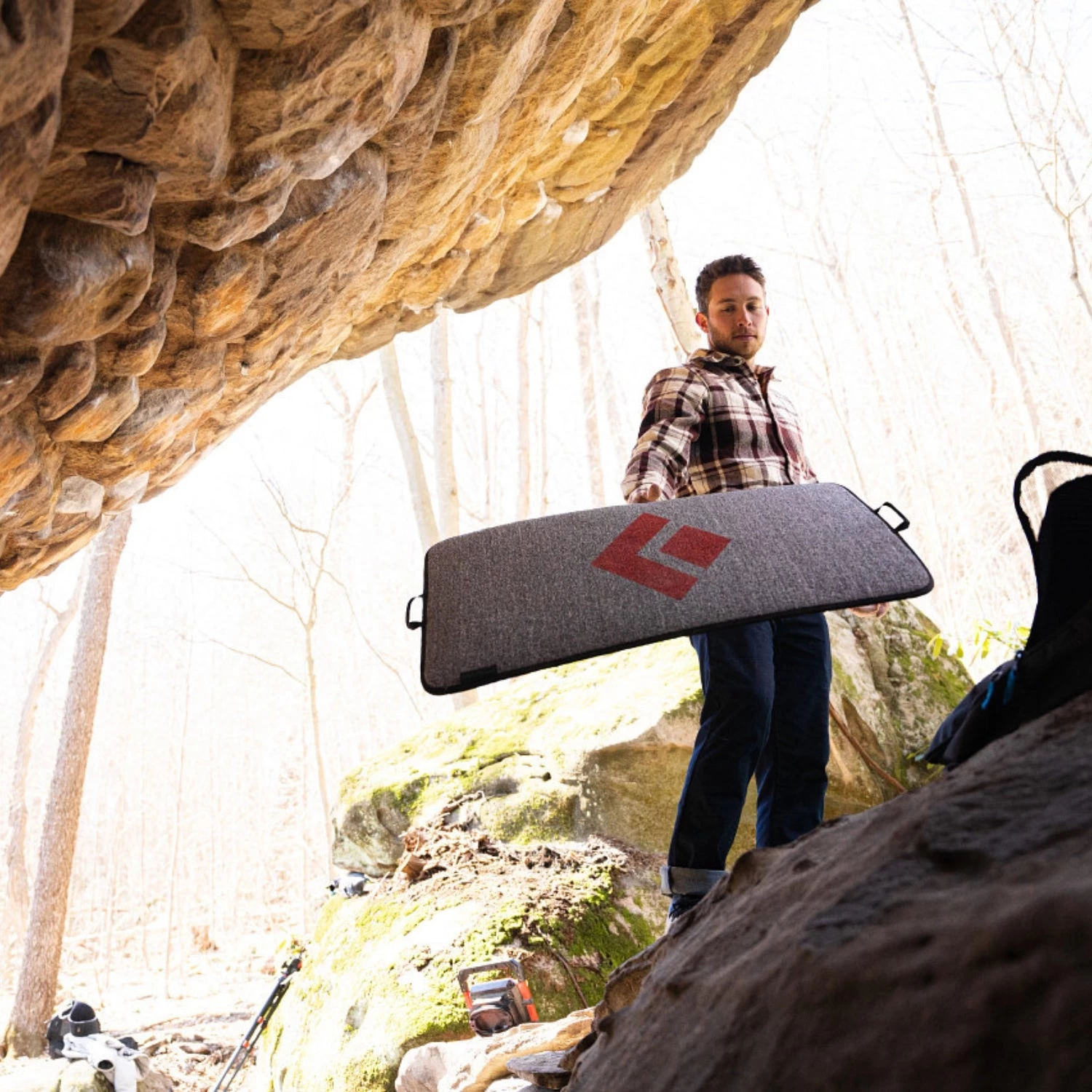 When facing narrow areas that can’t fit a full-sized pad or a circuit that doesn’t require one, the Sitstarter Pad is all you need to protect yourself. It comes equipped with handles for easy transportation and a carpeted top to keep your shoes clean before tackling the wall – the perfect addition to any boulderers pad collection.