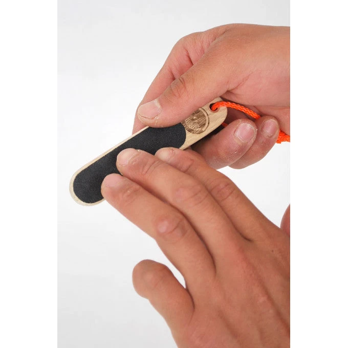 The Climbskin File is made from a high quality length of curved wood and features sandpaper pads on either side so that you can file away damaged skin and calluses from your fingers or hands.Â