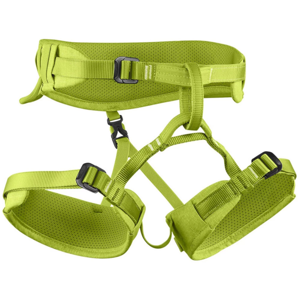 Featuring breathable 3D mesh padding and soft webbing edges, the Edelrid Finn III Kids Harness offers maximum comfort without pressure points. There are three Slide Block buckles on the waist belt and leg loops allowing the harness to be quickly and precisely adjusted, whilst the adjustable padding at the hips allows the tie-in point to be permanently centered at the front. There are also some impressive practical features, such as the textile abrasion protection on the leg loop bridge which makes the harness sturdier and more durable, as well as two high-strength gear loops for quickdraws and additional equipment.