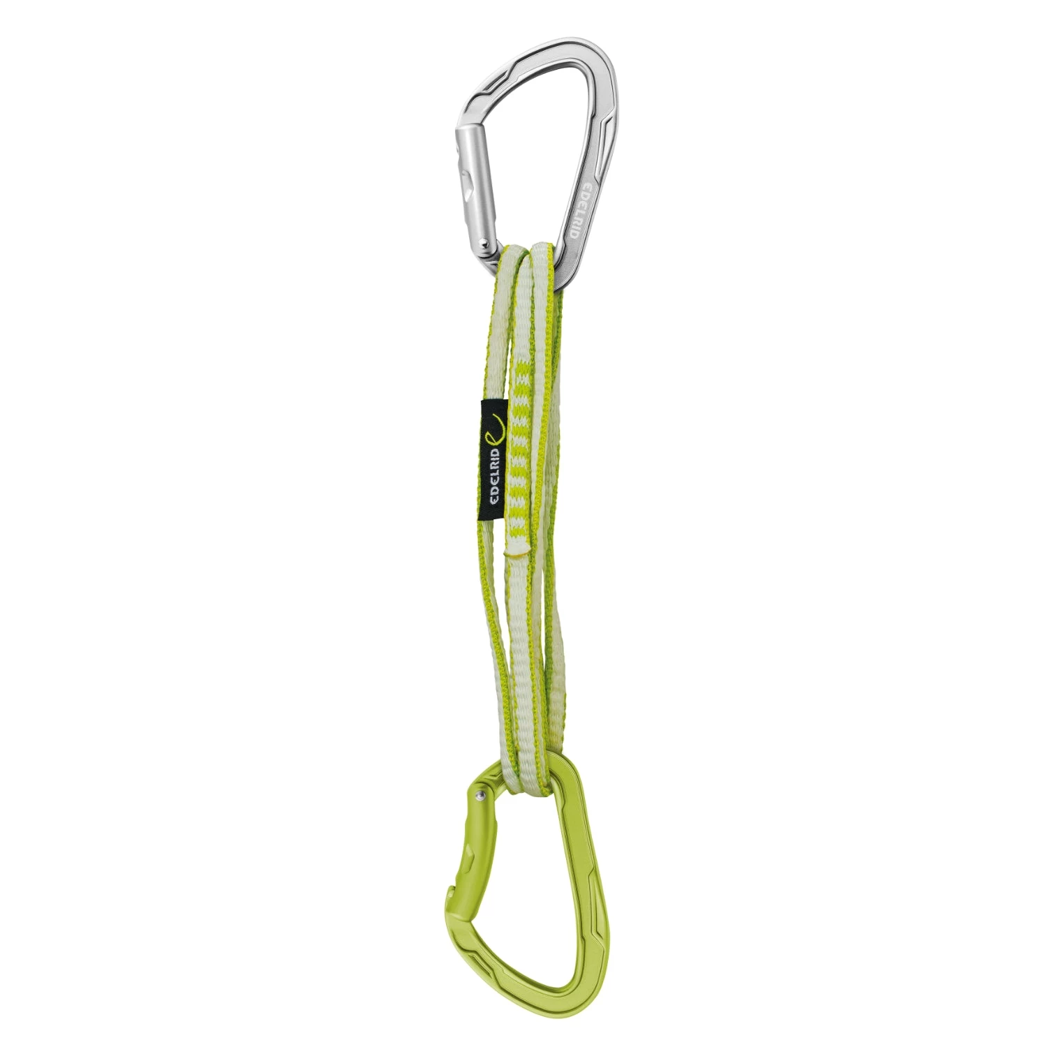 Incorporates a 60cm dyneema sling that can be quickly extended and keylock carabiners to aid in smooth clipping. The lower carabiner has a curved gate and contrasting colour.