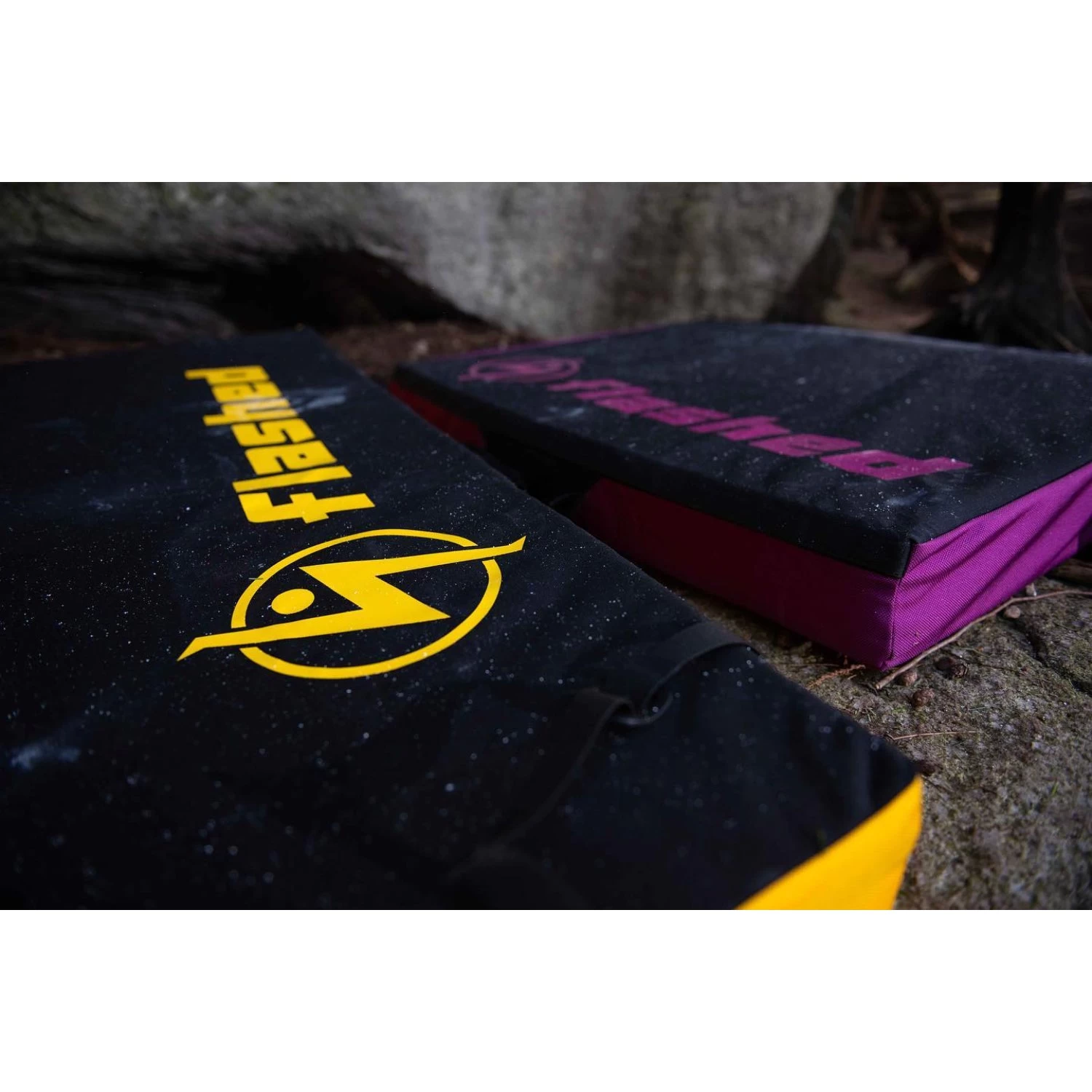 The Flashed Big Squishy is a large and soft bouldering mat, designed tp create the perfect landing area on rough ground. Born from the forests of Squamish where large holes and sharp talus are common, Flashed have created this pad to span any gaps in your landing area and soak up any blocks beneath you as you land allowing you to focus on the climb ahead of you. The Big Squishy has your back!Â