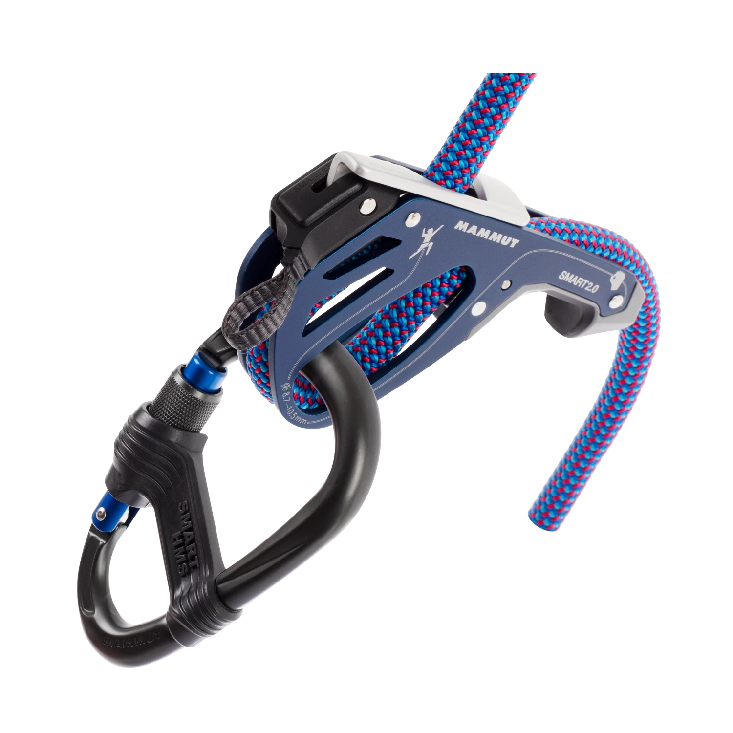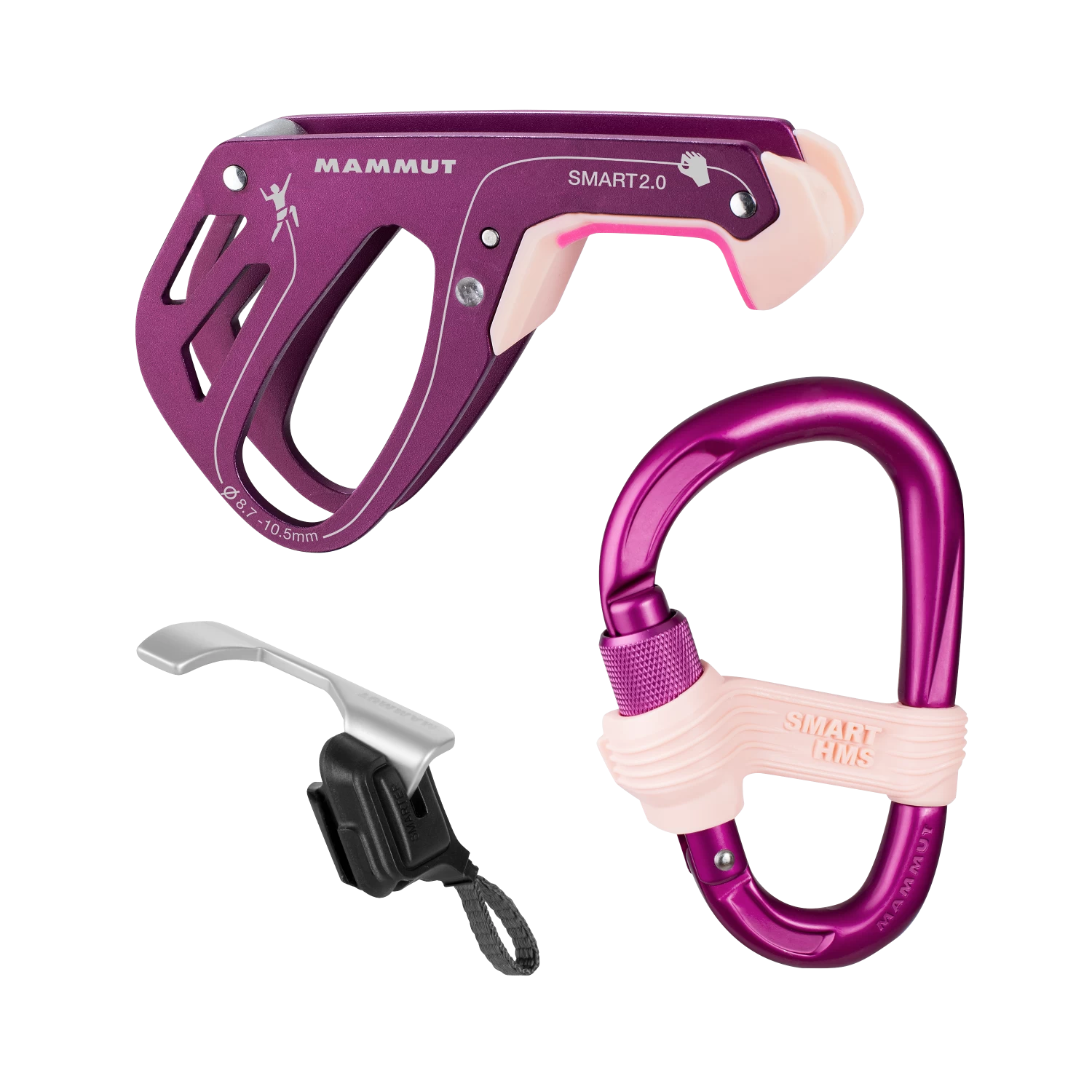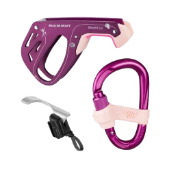 The Mammut Smarter 2.0 Belay Package contains a Smart 2.0 climbing belay device, Smart HMS carabiner and a Safety gate to ensure of no twisting on the harness.Â