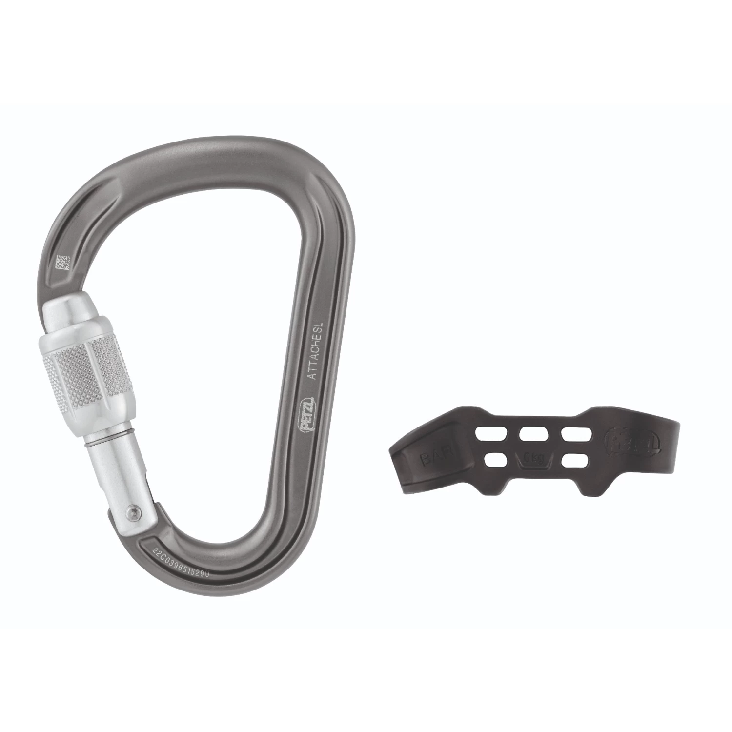 The Petzl Attache Screw-Lock Carabiner with unidirectional positioning bar is a top-end belaying and rigging carabiner, versatile for use in all climbing situations.Â