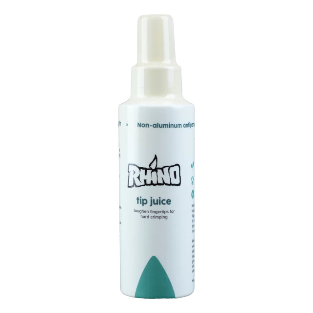Rhino Skin Solutions TIP JUICE: Rhino’s strongest antiperspirant. Apply only to the pads of your fingers. Apply 1-2 times per week. Highlights: Hugely increases tip durability on small, sharp crimps.