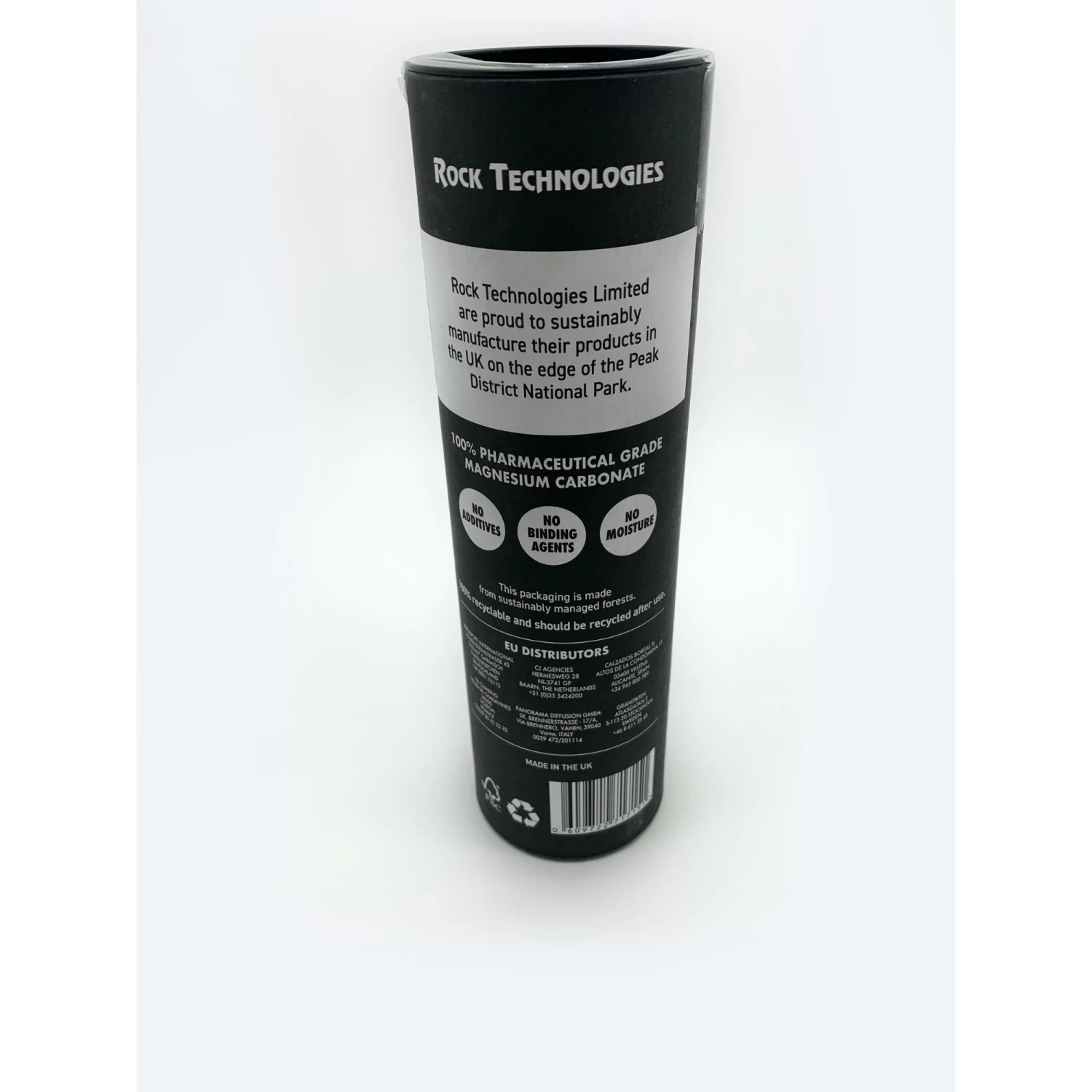 100% pharmaceutical-grade magnesium carbonate, RT’s own formula mixed and packed in the UK, gives superior drying and friction qualities and doesn’t contain any artificial drying additives. The packaging is made from 100% recyclable materials sourced from sustainably managed forests.
